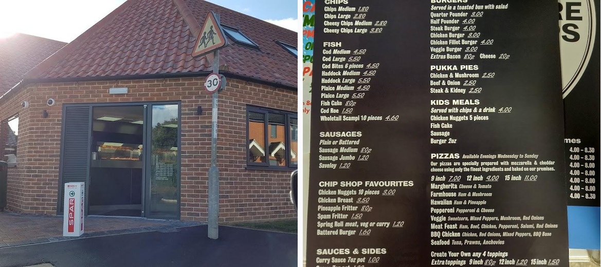 WOW! Lived locally for 3 years, why haven't we been here before! My son says that the chips are outstanding, he works locally at an extremely renound pub. The pizza is so good, on another level from the norm of chip shop food. Cracking menu. It's cash only at the moment; however no panic as the Spar Post Office next door does cash back and also take away beer on tap which is very cool! The service was exceptional, thanks guys. We will most certainly be coming back for more.
